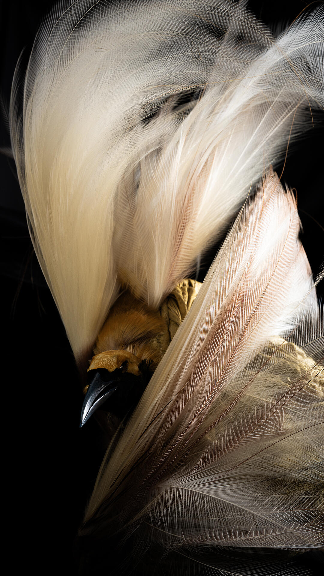 During a project focused on digitizing specimens from the Academy's collection, a unique artifact was discovered – a vintage headwear adorned with a bird of paradise. This exquisite piece, produced in the early 20th century, exemplifies the era's complex aesthetic of elegance and excess, which often came at the cost of the natural world.Digital Media graduate students, including master's and PhD candidates, under the supervision of professors Emil Polyak and Kathi Martin, undertook the challenge of creating a digital twin of this specimen using advanced computational photography and 3D reconstruction. The goal of producing a high-quality digital twin for interactive viewing was accomplished, capturing the intricate details and color of this historic headwear fashioned from a once-living creature. The artistic creations showcased in this exhibition are the expressive byproducts of the digital acquisition process, which led the students to explore their emotional and perceptual responses through various media."Plumes and Pixels" provides a window into the artists' creative journeys as they worked intimately with this remarkable artifact.